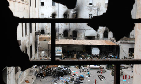 Across town at the army base, which fell to swarming demonstrators on Sunday, a dungeon has been unearthed. It is not far from Gaddafi’s former parade ground, which lies in a crumpled heap. Today fathers were taking their children through the site, a heavily concreted underground hole that showed signs of recent use. “People were tortured here last week,” said one father. “It used to be the most feared place in town. Now it’s for everyone to see. It shows how bad he was and how lucky we are.”