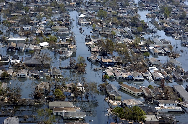The heavily flooded Ninth Ward of New Orleans 10 days after Hurricane Katrina, September 2005 (Photo: Kathy Anderson, Times-Picayune).I remember, ten years ago, being profoundly shocked by the almost indescribably inept response of the Bush administration to the aftermath of Hurricane Katrina, which struck New Orleans on August 29, 2005, and thinking that it showed two things above all: firstly, that racism remained a horrendous blight on the nation, as it was New Orleans’ poor and black population that suffered the most, and that, I was convinced, would be socially cleansed as the clean-up began; and, secondly, that this is what happens when governments put private profit and the slashing of federal budgets before the common good.