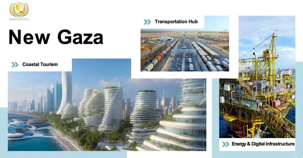 At the meeting, as Drop Site News described it, “Gabay laid out a 10-year plan to turn Gaza into a ‘Mediterranean Riviera’ with 200 hotels and possibly artificial islands”, a proposal that also “includes schools, hospitals, factories, agriculture, rail lines, water and energy plants, tech hubs, sports facilities, plus a seaport and airport.” He also “cited the need to clear 70 million tons of rubble and miles of tunnels, projecting ‘hundreds of thousands of jobs’ under a ‘free economy’ model backed by a Gaza sovereign fund”, although he stressed that all of the proposed development “depends on the complete disarmament of Hamas.”