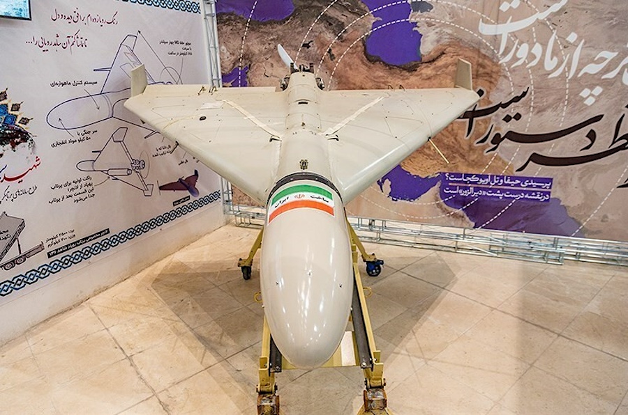 A Shahed-136 drone at an exhibition in Iran in 2023. (Photo: Tasnim News Agency via Wikipedia).