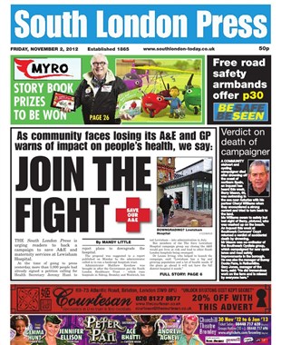 As the campaign to save Lewisham Hospital’s A&E Department intensifies, with a petition launched by Heidi Alexander MP close to reaching 5,000 signatures in just four days, the South London Press, the bi-weekly regional newspaper based in Streatham, has added its support, with a front-page story in Friday’s edition, entitled, “Join the fight: Save our A&E.”
